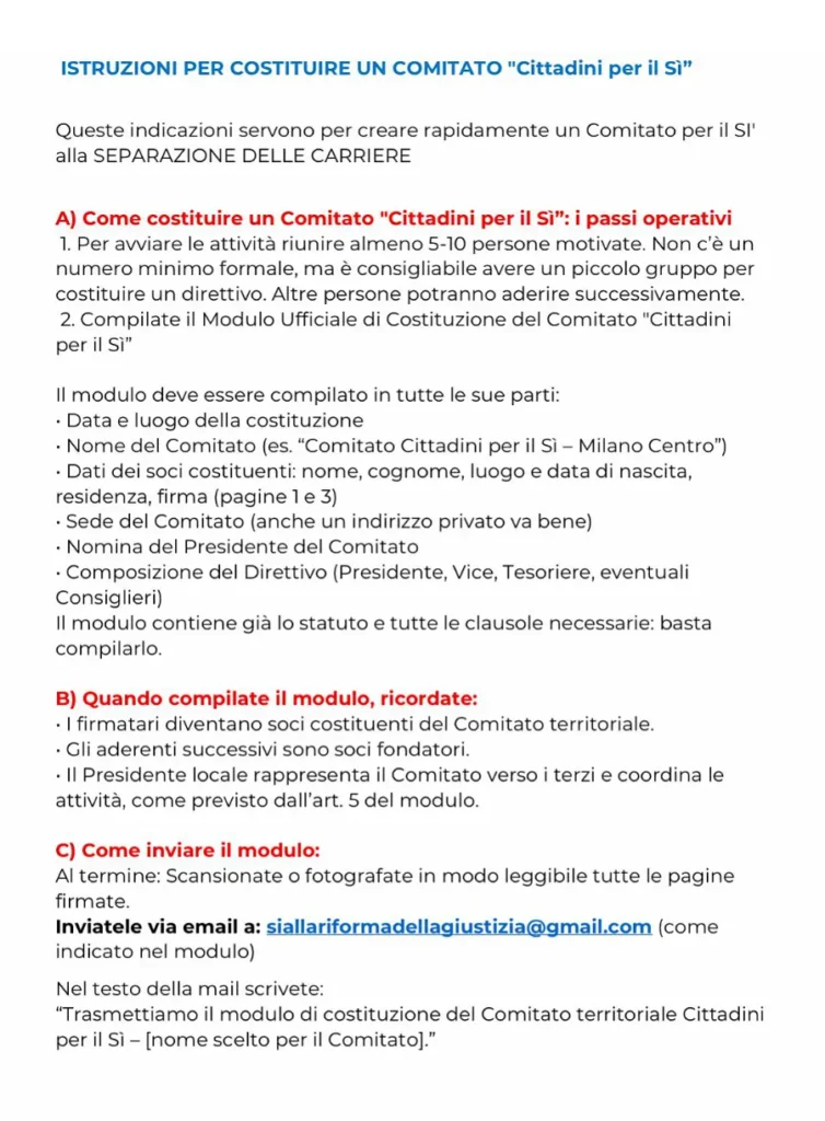 Il Comitato Cittadini per il SÌ nasce per informare sul Referendum Giustizia 2026, favorire una partecipazione consapevole e coordinare la costituzione di comitati locali sul territorio.