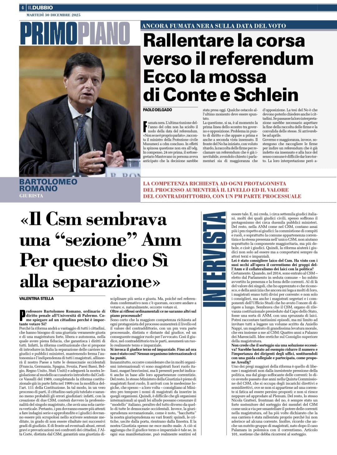 Intervista su Il Dubbio a Bartolomeo Romano che spiega la sua convinzione che la separazione delle carriere allineerà l’Italia a tutte le democrazie occidentali, in armonia con il processo accusatorio, che è processo di parti, davanti a un giudice terzo e impaziale.